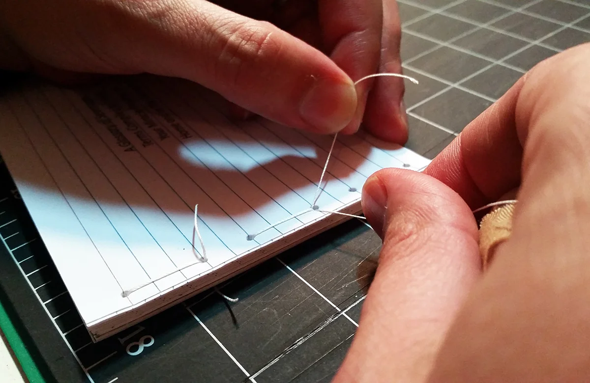 When I graduated with a BA in English (University of Richmond, 1995), I thought I would either go on for a PhD to become a professor of literature, or an MFA to become a poet. Two discoveries derailed me from either track. First, I was given a handmade Japanese journal as a gift by a professor and mentor. The exposed stab binding on the outside of the journal sparked the realization that these magical objects that had obsessed me for so long are made, and that I, too, could learn how to make them. Second, I encountered the Norton Anthology of Postmodern American Poetry around the same time, which featured many transgressive, revolutionary poems from the 1960s and 70s that had been formative for me when I first read them in yellowing, old, small-press publications. In the new anthology, though, they seemed neutered — their wildness reined in by approval and canonization. Seeing how the impact of the exact same poems could be altered so radically based on things like the font, the paper quality, and the cultural status of the publisher, inspired my first awareness that the physical body of a poem can be as meaningful as its words. I’ve been obsessed with the materiality of books and texts ever since.